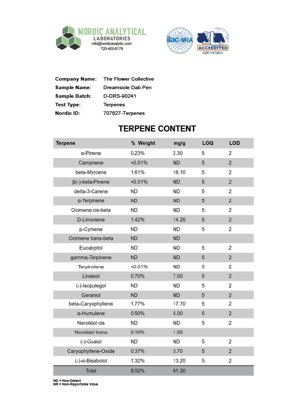 Dreamsicle Terpene Analysis