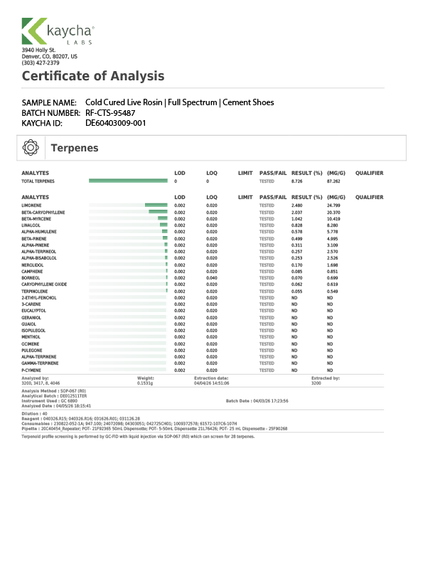 All laboratory test results displayed on this website have been redacted and reformatted to protect sensitive business information. While certain non-essential details may be removed or presented differently, the core analytical data remains unchanged. The test results provided are true, accurate, and reflect the verified outcomes of certified laboratory testing.